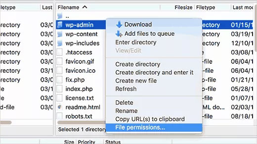 Все папки на вашем сайте WordPress должны иметь файловое разрешение 744 или 755.