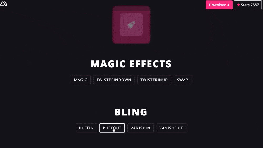 Magic CSS — это набор простых анимаций для включения в ваши веб-проекты или приложения.