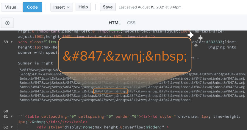 Знаете ли вы, что после нужного объема текста предварительного просмотра можно создать белое пространство, чтобы почтовые клиенты не добавляли в содержимое прехедера другой отвлекающий текст или символы?