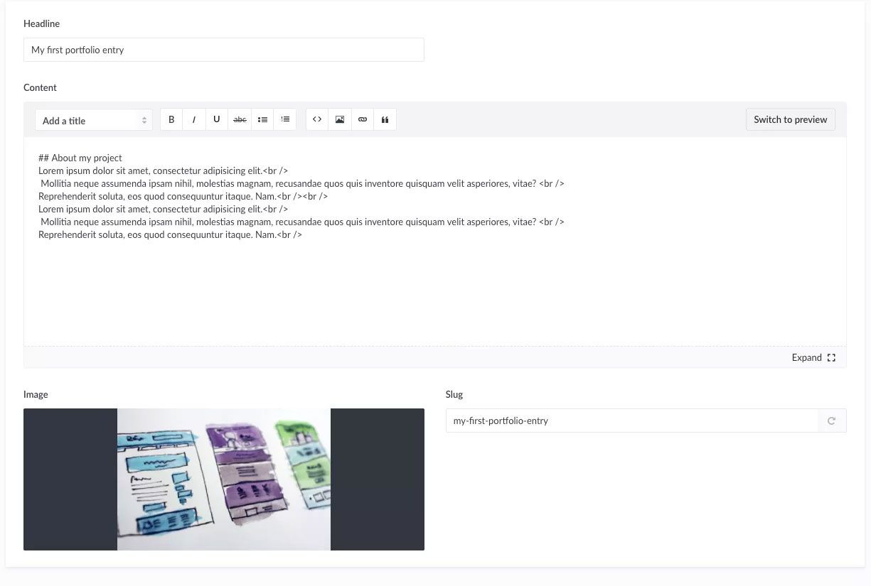 Это должно добавить наше изображение прямо в наше портфолио. Заполним и остальные поля.