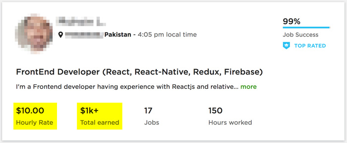 Хассан из Пакистана — $10/час — заработано более $1,000