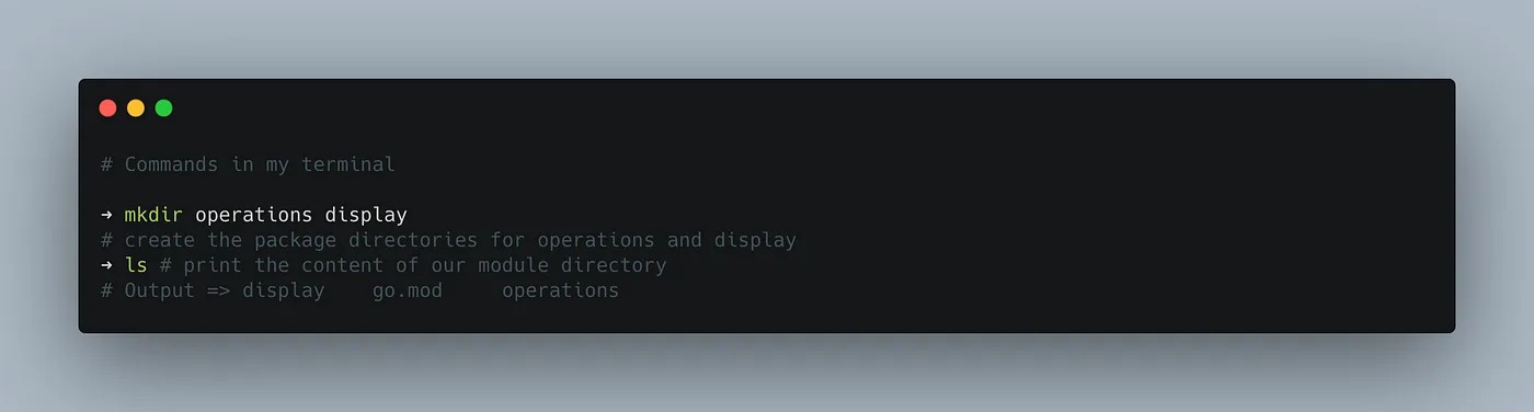 Давайте напишем небольшой модуль, назовем его calculator, и будем использовать его в другой программе на Go. Если на вашей машине еще не установлен Go, перейдите сюда и следуйте красиво написанным инструкциям. Данный материал я переведу в самое ближайшее время.