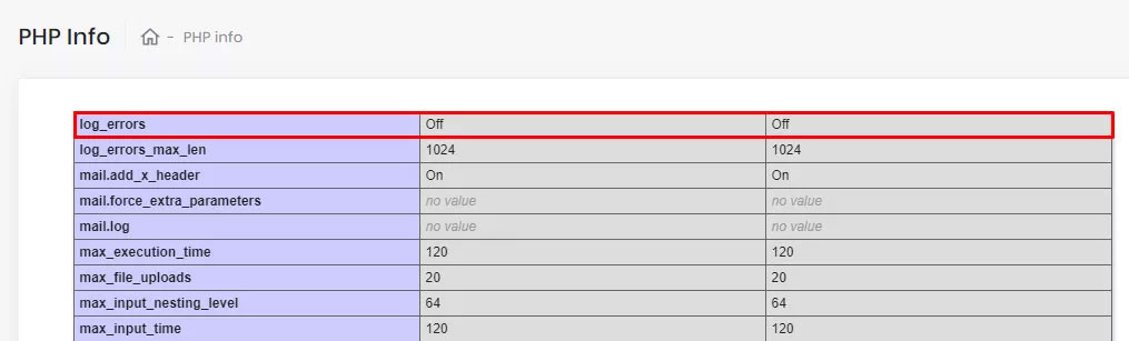 Откройте информацию о PHP, нажмите CTRL + F и найдите значение log_errors.