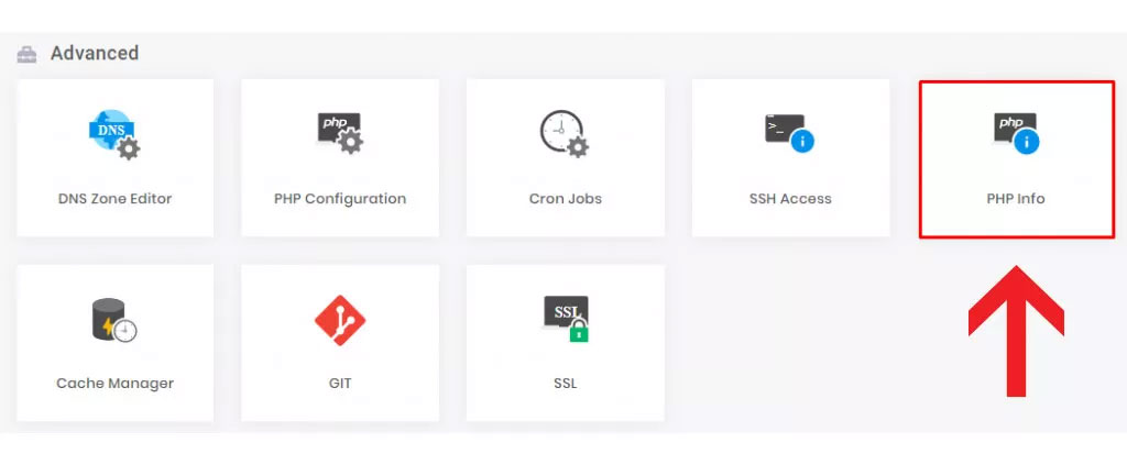 Для примера мы будем использовать панель от одного хостинг-провайдера. Благодаря большинству панелей управления вы сможете легко проверить информацию о PHP с помощью инструмента PHP Info.