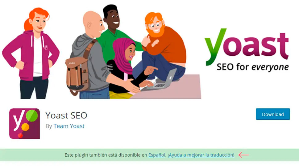Если вы хотите внести свой вклад в перевод конкретного плагина WordPress, вы можете сделать это, зайдя непосредственно на страницу любого плагина и нажав на уведомление, подобное показанному ниже. Конечно, уведомление, которое вы увидите, будет на вашем локальном языке. Нажав на уведомление, вы попадете на страницу плагина в разделе «Перевод WordPress». Оттуда вы сможете выбрать подпроекты плагина и тексты, в которые вы могли бы внести свой вклад с помощью перевода.