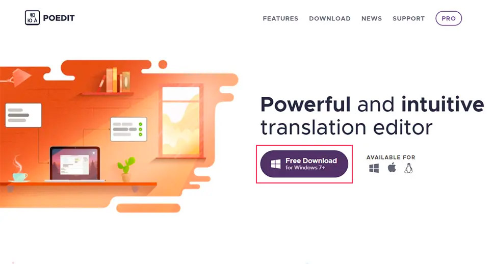 Чтобы использовать Poedit, вам нужно будет перейти на сайт Poedit и скачать программу, нажав кнопку «Бесплатная загрузка» (Free Download), которая доступна для Windows, Mac и Linux.