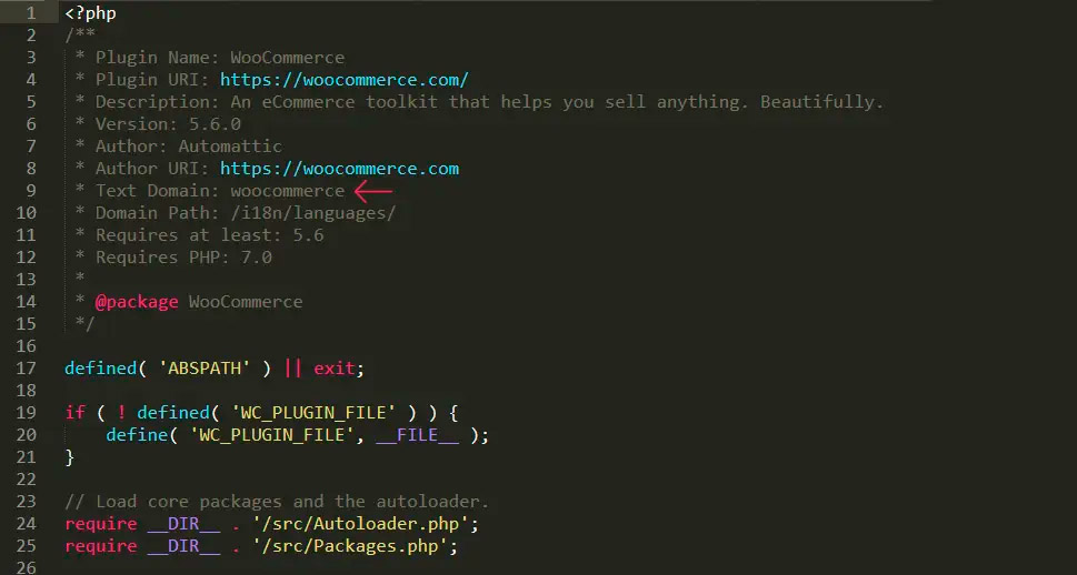 Помимо этого, вам также необходимо знать текстовый домен плагина, который используется для целей перевода. При использовании плагина Loco Translate об этом не нужно было беспокоиться, так как плагин сам давал названия соответствующим файлам .po и .mo в соответствии с руководством по переводу WordPress.