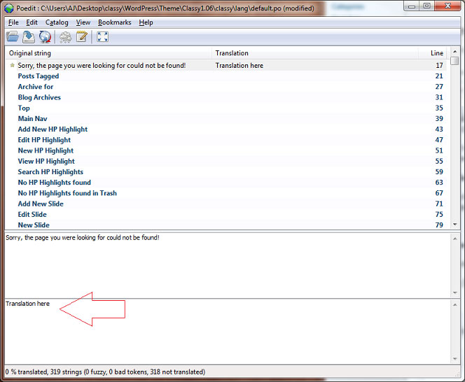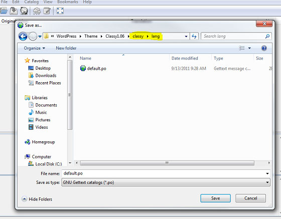 5. Теперь сохраните файл .po по умолчанию в папке lang вашей темы.