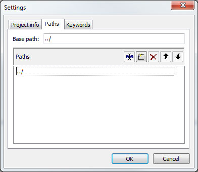 3. Перейдите на вкладку Paths (пути) и введите путь к файлам, которые нужно перевести. Лично я помещаю свои файлы .po и .mo в папку lang в моей теме, поэтому мой базовый путь — ../.