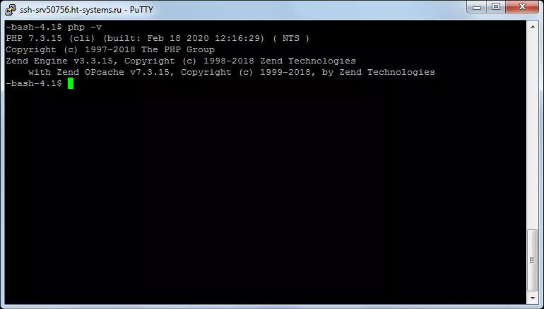 Для проверки работы терминала и того, что у нас всё в порядке мы можем проверить версию PHP, введя: