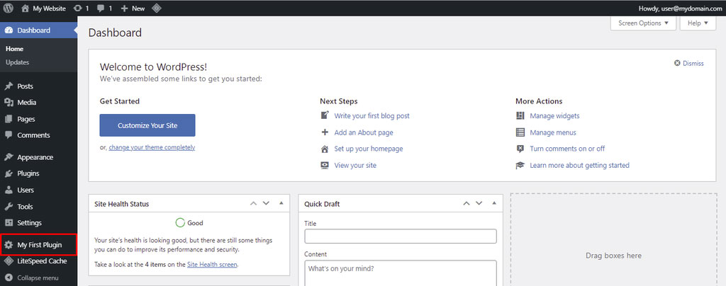 Наконец, перейдите в раздел Plugins вашей панели WordPress и активируйте новый плагин. Если процесс прошел успешно, ссылка на панель администратора вашего первого плагина появится в нижней части навигационного меню.