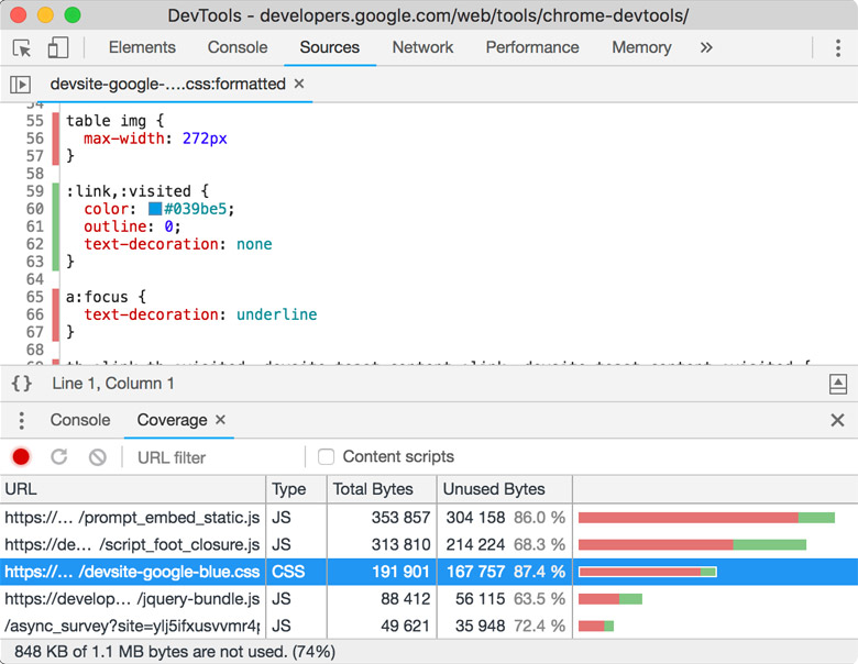 Для того, чтобы определить неиспользуемые стили в браузере Google Chrome есть отличный инструмент под названием «Coverage«. Именно его мы и будем использовать.