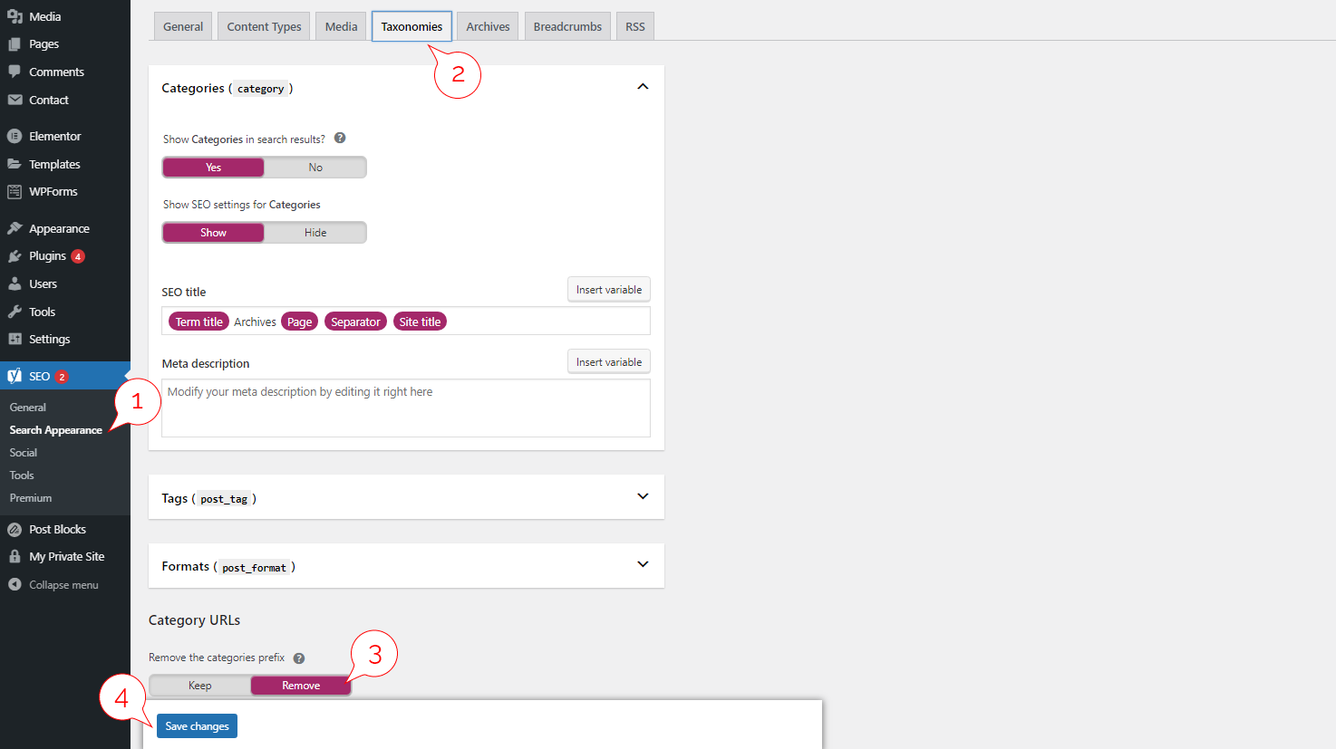 Но да, плагин Yoest SEO тоже может помочь удалить category из урла вашего сайта.