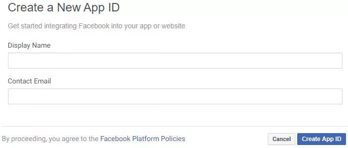 Введите отображаемое имя (Display Name) и контактную электронную почту (Contact Email), затем нажмите кнопку Create App ID (Создать ID приложения):